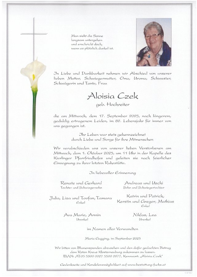 An die Verwandten von Aloisia Czek