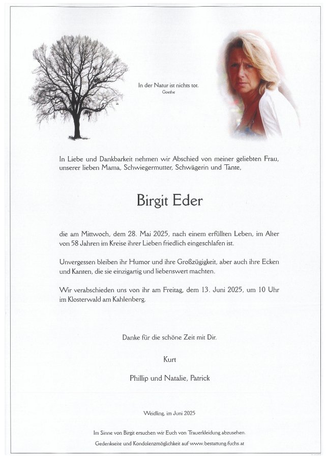 Birgit EDERgestorben am 28. Mai 2025
