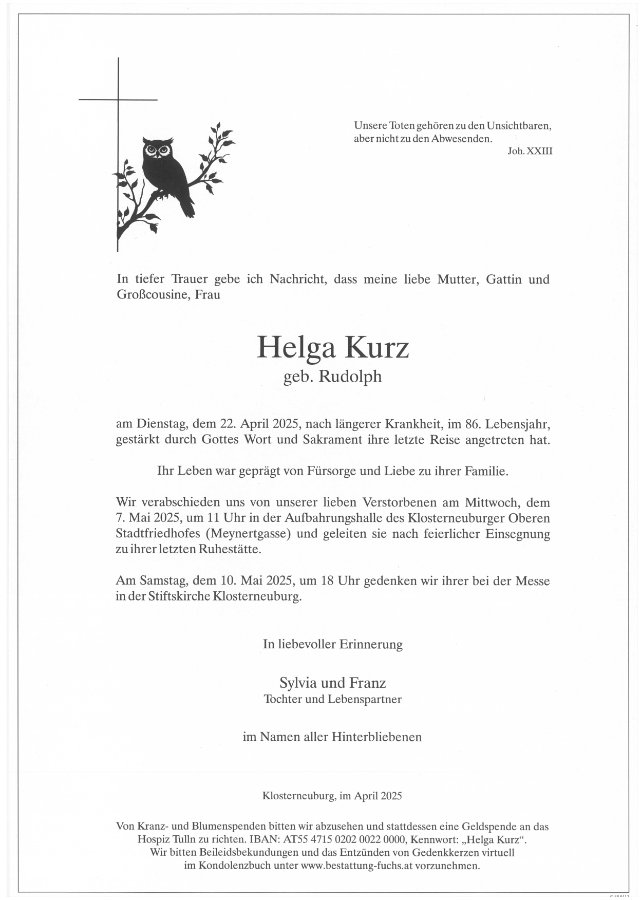 Sylvia und Franz, viel kraft in dieser Grossen Trauer