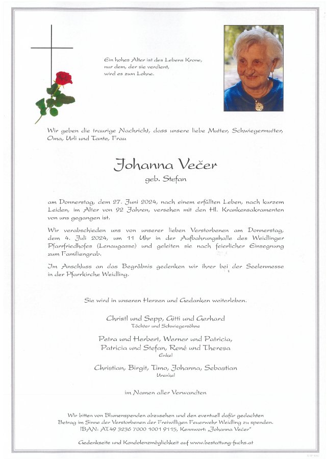 Johanna VECER geb. Stefan