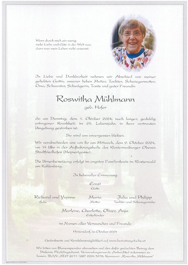 Roswitha MÜHLMANNgestorben am 1. Oktober 2024