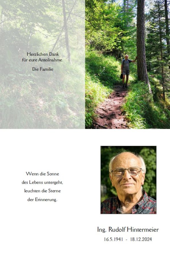 Vielen Dank für die Gedenkkarte und die sehr schön und fein gestaltete Verabschiedung von Eurem Vater Rudi, bei der ich viele für mich neue Seiten von ihm entdecken konnte.