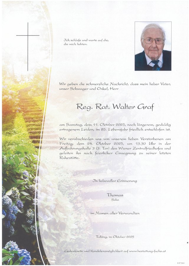 Unser aller Beileid zum Ableben Deines Vaters Reg. Rat Walter Graf. Wir denken an Dich und wünschen Dir viel Kraft.